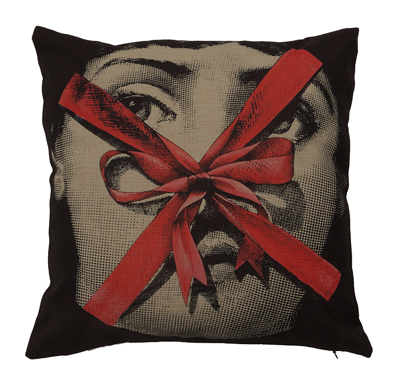 Созданная под вдохновением творчества знаменитого итальянского художника и дизайнера Пьеро Форназетти Piero Fornasetti его коллекции «Лица», посвященной талантливой актрисе Лине Кавальери, эта подушка декорирована красным праздничным бантом. Это не подушка — это просто подарок!